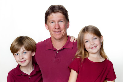 So a friend of mine asks me to take a shot of him and his two kids as a surprise for Mom...whose birthday is the next day. I didn't have a lot of time so I told him that I would meet him in his gym at 3pm (he is a phys. ed. teacher). Now the gym is huge but due to the size of my background fabric (6'x8') I couldn't use much of it.